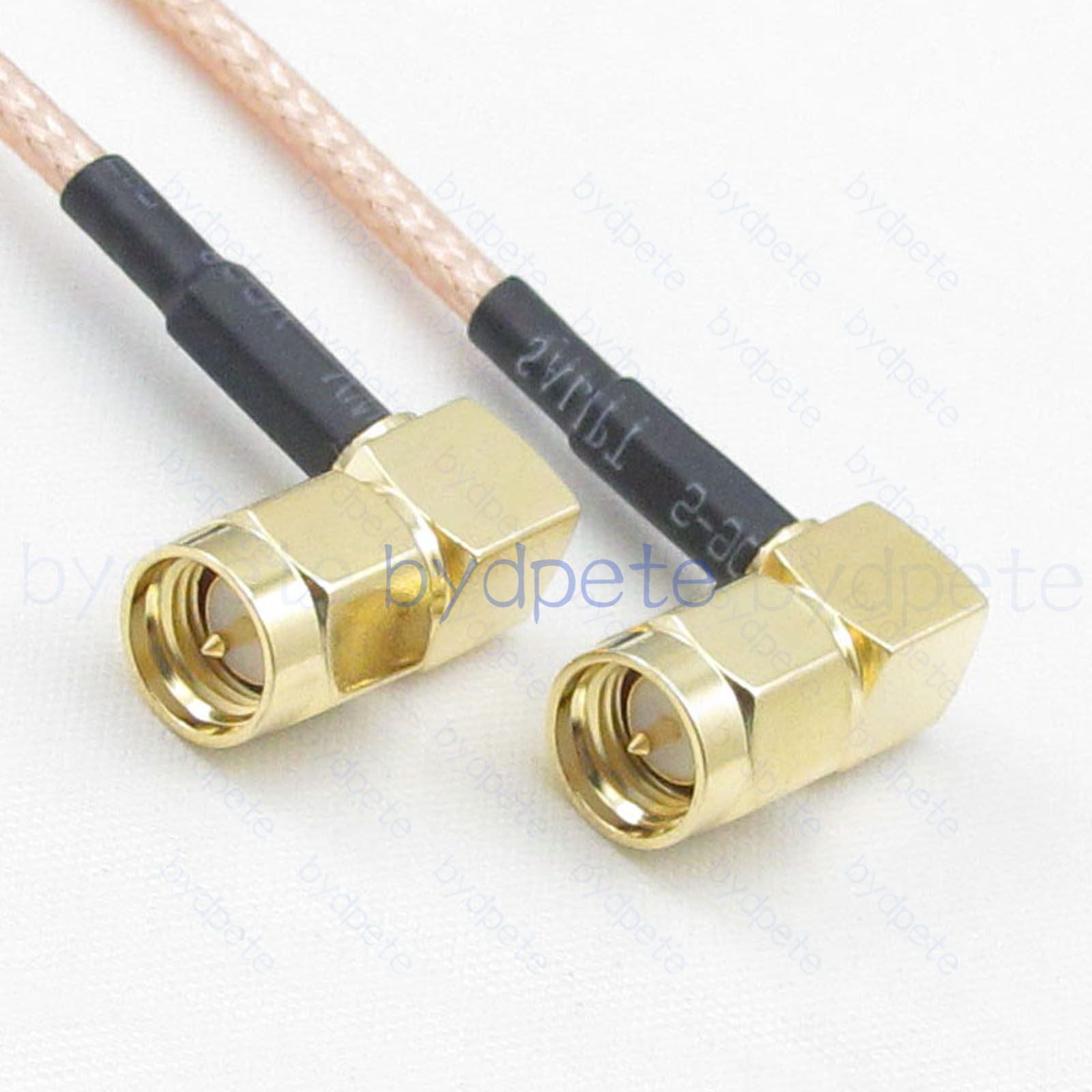 * Connector A : SMA male Right Angle 90Degree plug ( inside is thread and center is needle male pin ) * Connector B : SMA male Right Angle 90Degree plug ( inside is thread and center is needle male pin ) * Cable Type : RG316 Light Brown FEP Jacket ( White PTFE Insulation ) Coax Cable Low Loss ( center wires 7x0.175mm silver-plated , shield wires 80x0.1mm silver-plated ), outside diameter OD=2.5mm * Cable Length : Customized by buyer. ( If you want other length, please leave a message in the order or Contact us. ).
