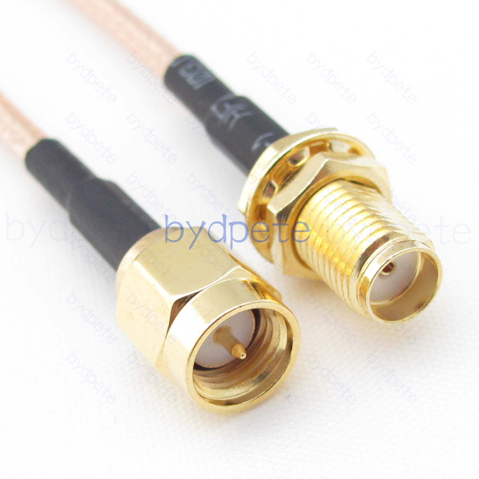 * Connector A : SMA male plug ( inside is thread and center is needle male pin ) * Connector B : SMA female jack ( outside screw and center is hole female pin ) * Cable Type : RG316 Light Brown FEP Jacket ( White PTFE Insulation ) Coax Cable Low Loss ( center wires 7x0.175mm silver-plated , shield wires 80x0.1mm silver-plated ), outside diameter OD=2.5mm * Cable Length : Customized by buyer. ( If you want other length, please leave a message in the order or Contact us. ).
