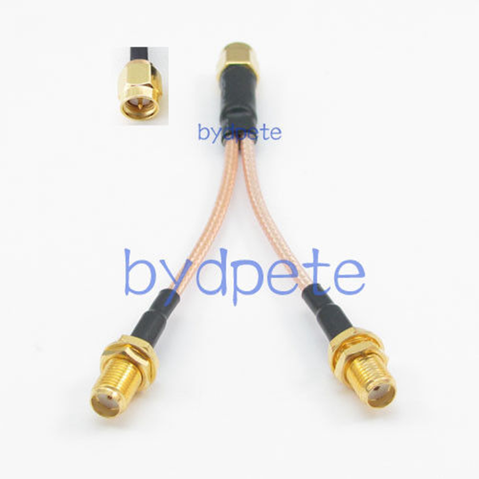 * Connector A : 1xSMA male plug ( inside is thread and center is needle male pin ) * Connector B : 2xSMA female jack ( outside screw and center is hole female pin ) * Cable Type : RG316 Light Brown FEP Jacket ( White PTFE Insulation ) Coax Cable Low Loss ( center wires 7x0.175mm silver-plated , shield wires 80x0.1mm silver-plated ), outside diameter OD=2.5mm * Cable Length : Customized by buyer. ( If you want other length, please leave a message in the order or Contact us. ).