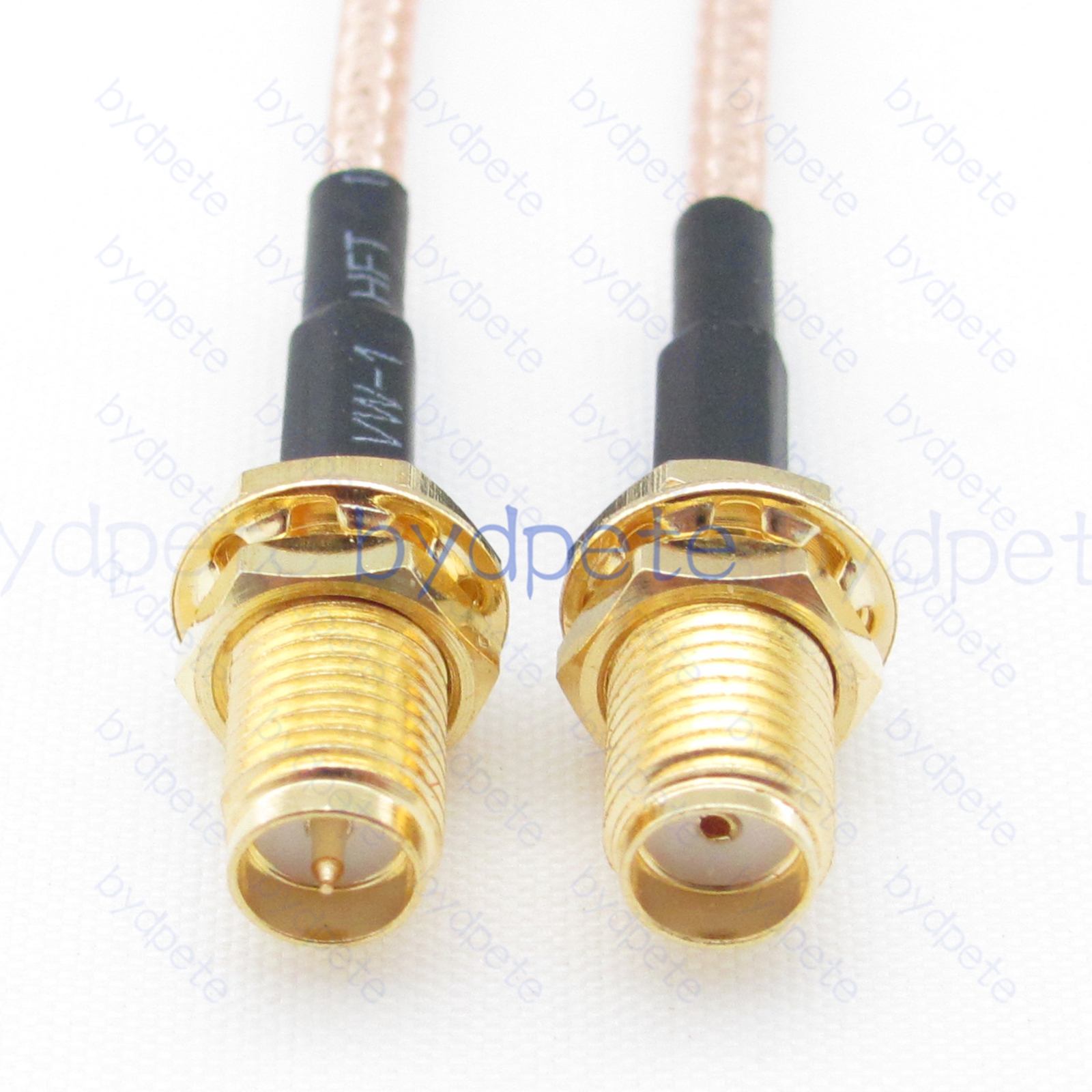 * Connector A : SMA female jack ( outside screw and center is hole female pin ) * Connector B : RPSMA female Reverse Polarity jack ( outside screw and center is needle male pin ) * Cable Type : RG316 Light Brown FEP Jacket ( White PTFE Insulation ) Coax Cable Low Loss ( center wires 7x0.175mm silver-plated , shield wires 80x0.1mm silver-plated ), outside diameter OD=2.5mm * Cable Length : Customized by buyer. ( If you want other length, please leave a message in the order or Contact us. ).