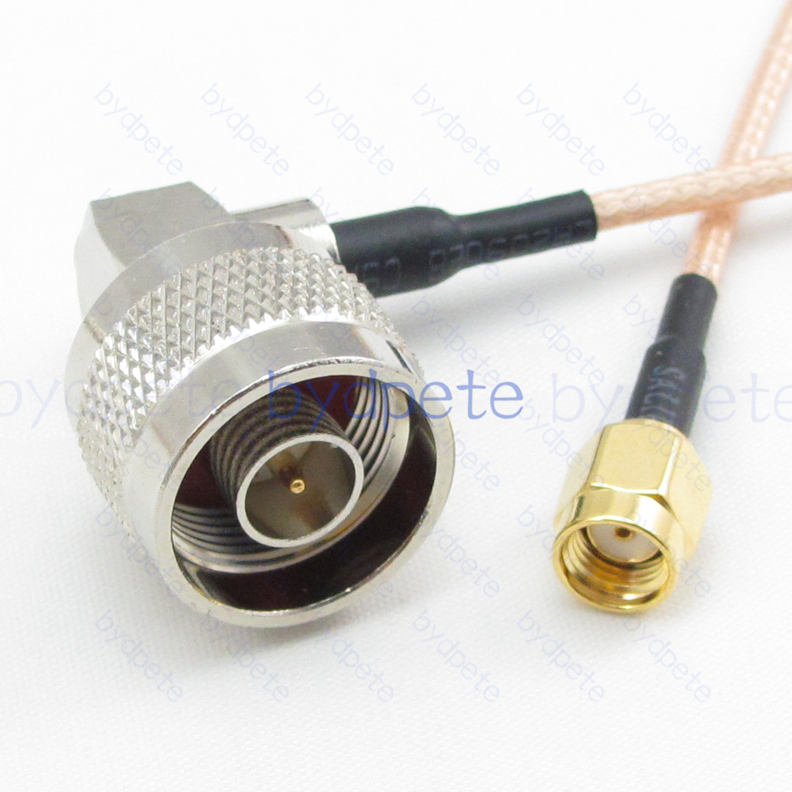 * Specifications : * Parts name : N-Type male Right Angle 90Degree plug to RPSMA male Reverse Polarity plug with RG316 Light Brown jacket PTFE Coaxial Cable Low Loss Cable BPC023N316R1