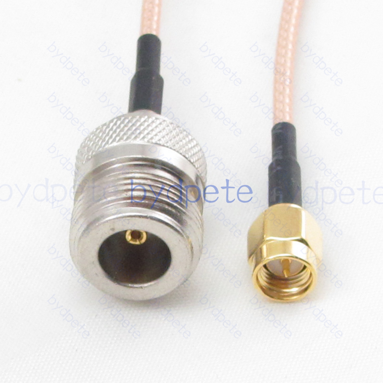 * Connector A : N-Type female jack ( outside is thread and center is hole female pin ) * Connector B : SMA male plug ( inside is thread and center is needle male pin ) * Cable Type : RG316 Light Brown FEP Jacket ( White PTFE Insulation ) Coax Cable Low Loss ( center wires 7x0.175mm silver-plated , shield wires 80x0.1mm silver-plated ), outside diameter OD=2.5mm * Cable Length : Customized by buyer. ( If you want other length, please leave a message in the order or Contact us. ).