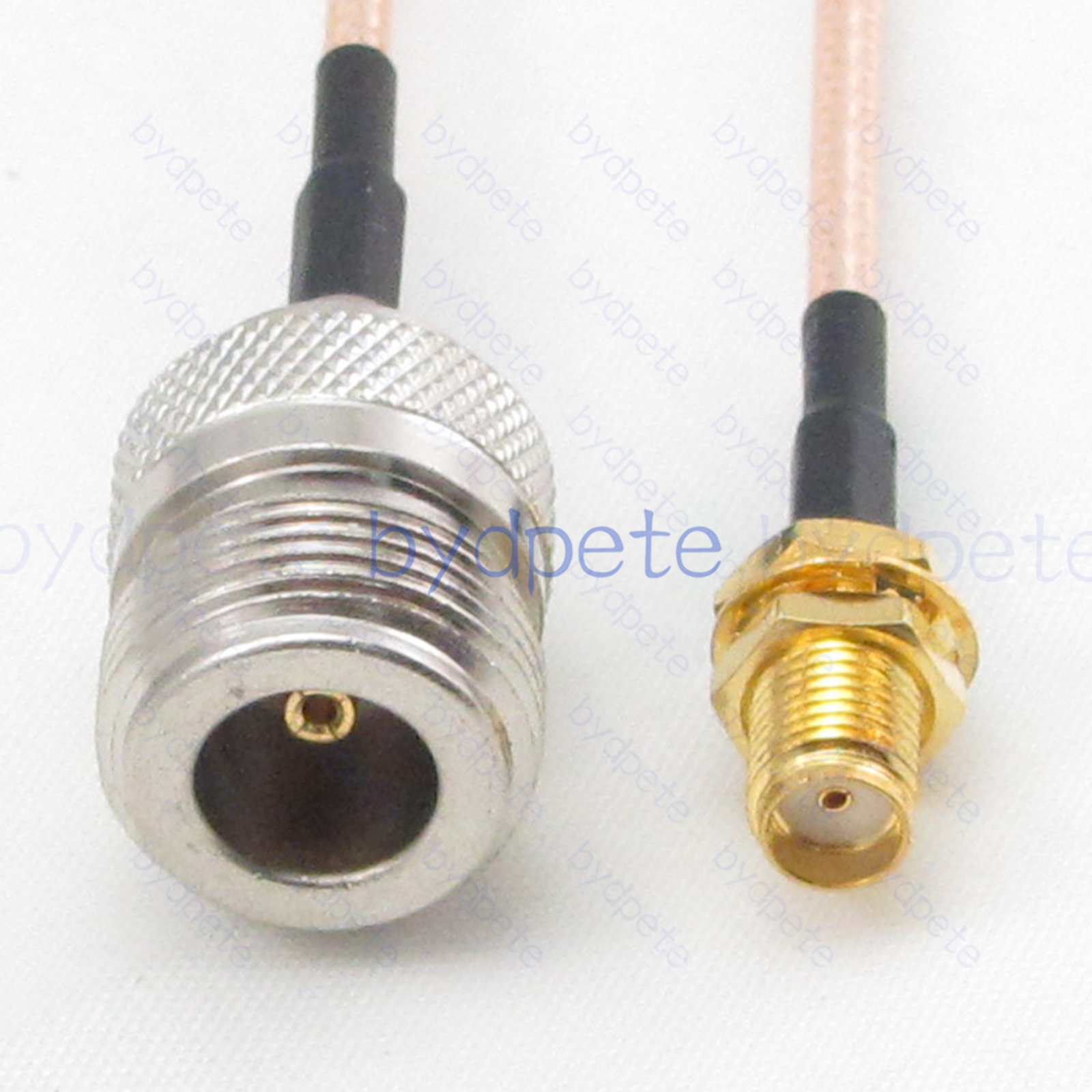* Connector A : N-Type female jack ( outside is thread and center is hole female pin ) * Connector B : SMA female jack ( outside screw and center is hole female pin ) * Cable Type : RG316 Light Brown FEP Jacket ( White PTFE Insulation ) Coax Cable Low Loss ( center wires 7x0.175mm silver-plated , shield wires 80x0.1mm silver-plated ), outside diameter OD=2.5mm * Cable Length : Customized by buyer. ( If you want other length, please leave a message in the order or Contact us. ).