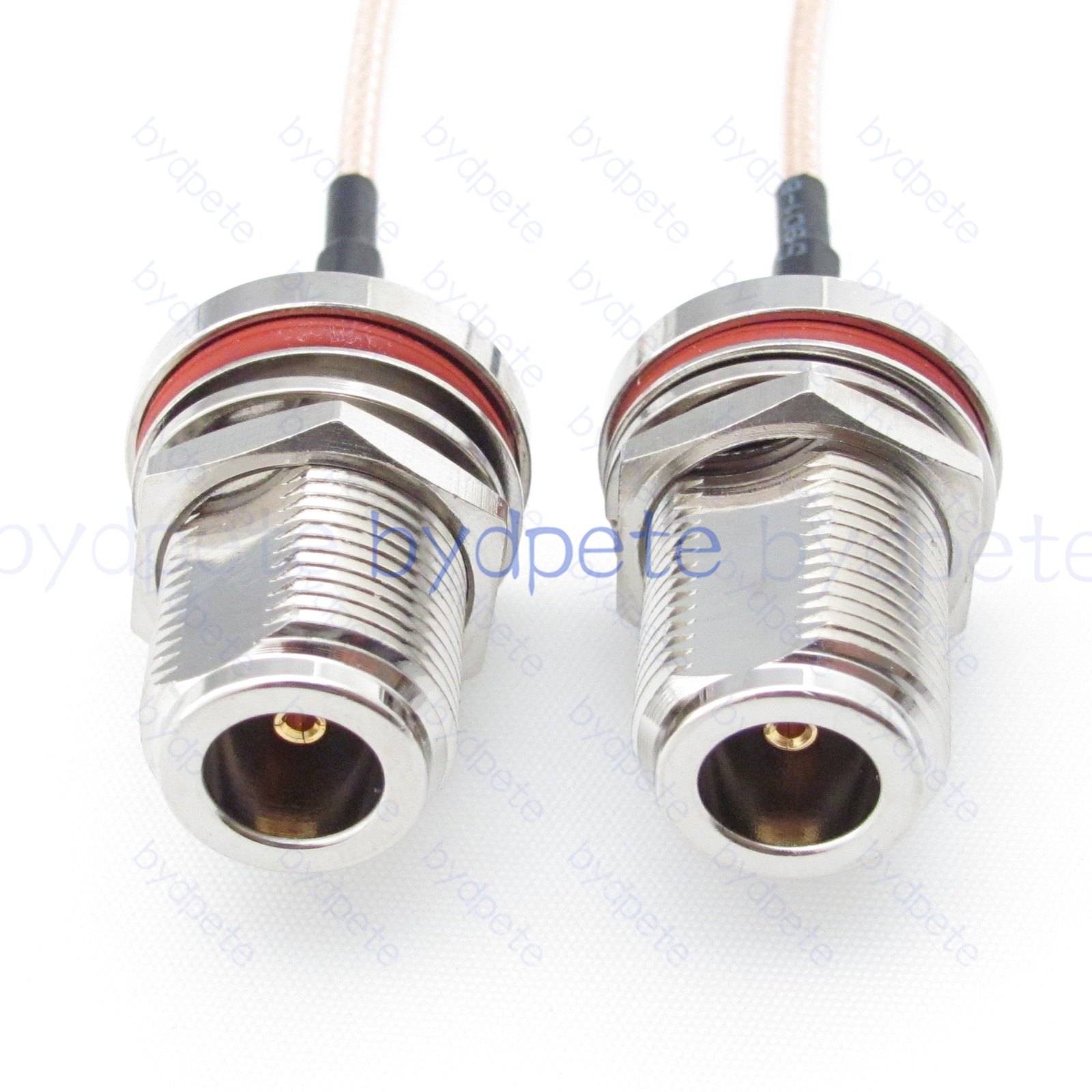 * Connector A : N-Type female Bulkhead Waterproof jack ( outside is thread and center is hole female pin ) * Connector B : N-Type female Bulkhead Waterproof jack ( outside is thread and center is hole female pin ) * Cable Type : RG316 Light Brown FEP Jacket ( White PTFE Insulation ) Coax Cable Low Loss ( center wires 7x0.175mm silver-plated , shield wires 80x0.1mm silver-plated ), outside diameter OD=2.5mm * Cable Length : Customized by buyer. ( If you want other length, please leave a message in the order or Contact us. ).
