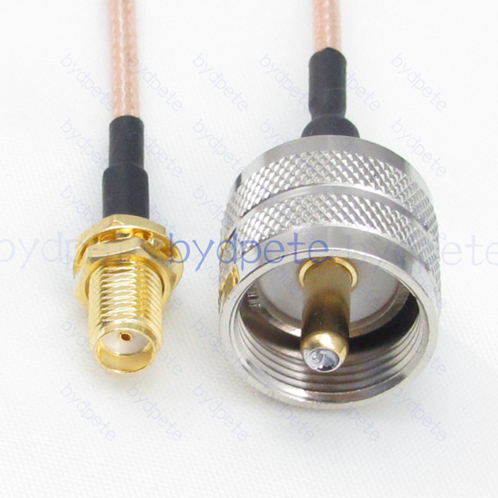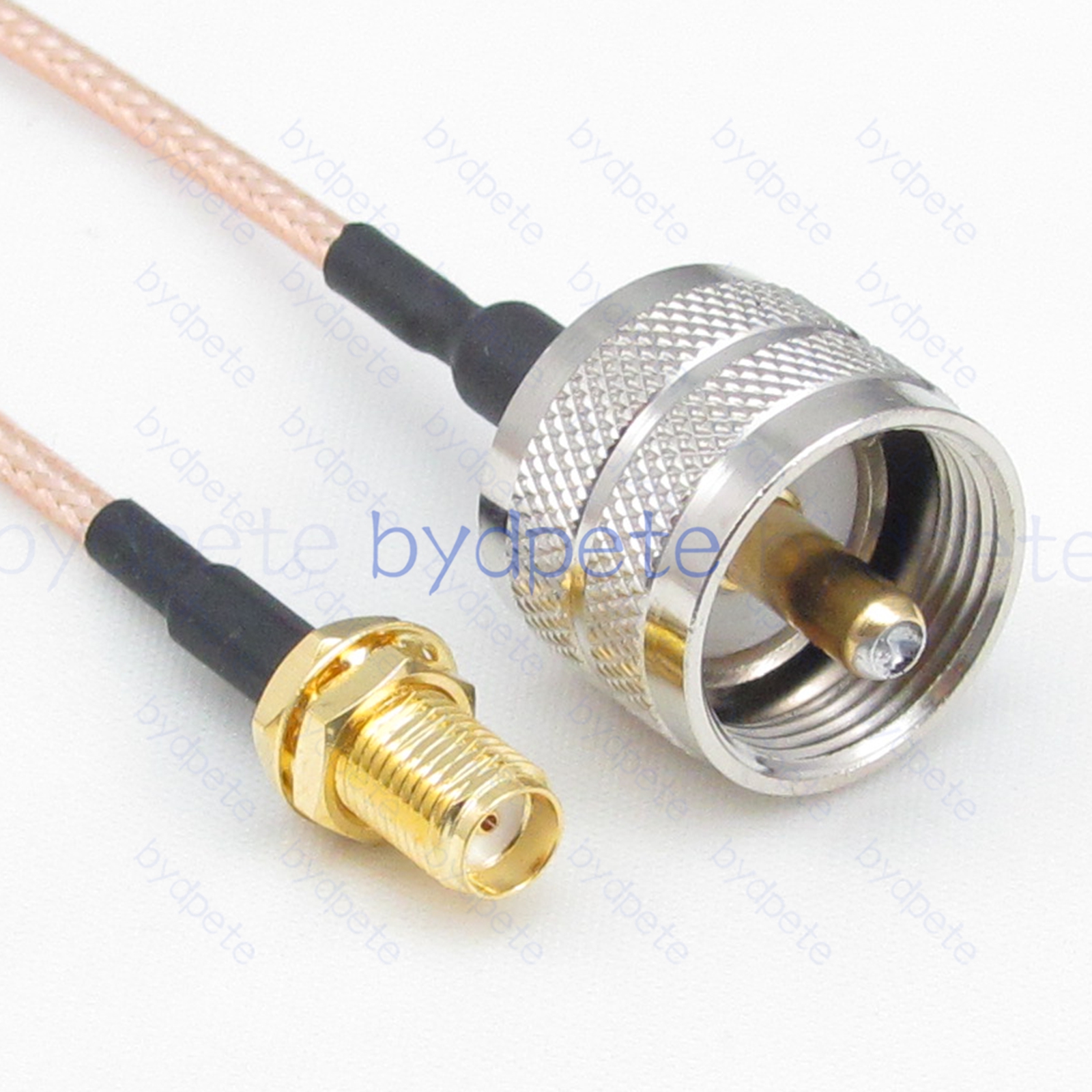 * Connector A : UHF male PL259 plug ( inside is thread and center is needle male pin ) * Connector B : SMA female jack ( outside is thread and center is hole female pin ) * Cable Type : RG316 Light Brown FEP Jacket ( White PTFE Insulation ) Coax Cable Low Loss ( center wires 7x0.175mm silver-plated , shield wires 80x0.1mm silver-plated ), outside diameter OD=2.5mm * Cable Length : Customized by buyer. ( If you want other length, please leave a message in the order or Contact us. ).