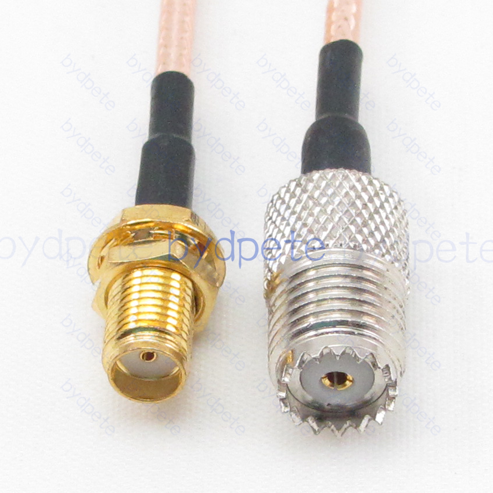 * Connector A : Mini UHF female SO239 jack ( outside is thread and center is hole female pin ) * Connector B : SMA female jack ( outside is thread and center is hole female pin ) * Cable Type : RG316 Light Brown FEP Jacket ( White PTFE Insulation ) Coax Cable Low Loss ( center wires 7x0.175mm silver-plated , shield wires 80x0.1mm silver-plated ), outside diameter OD=2.5mm * Cable Length : Customized by buyer. ( If you want other length, please leave a message in the order or Contact us. ).