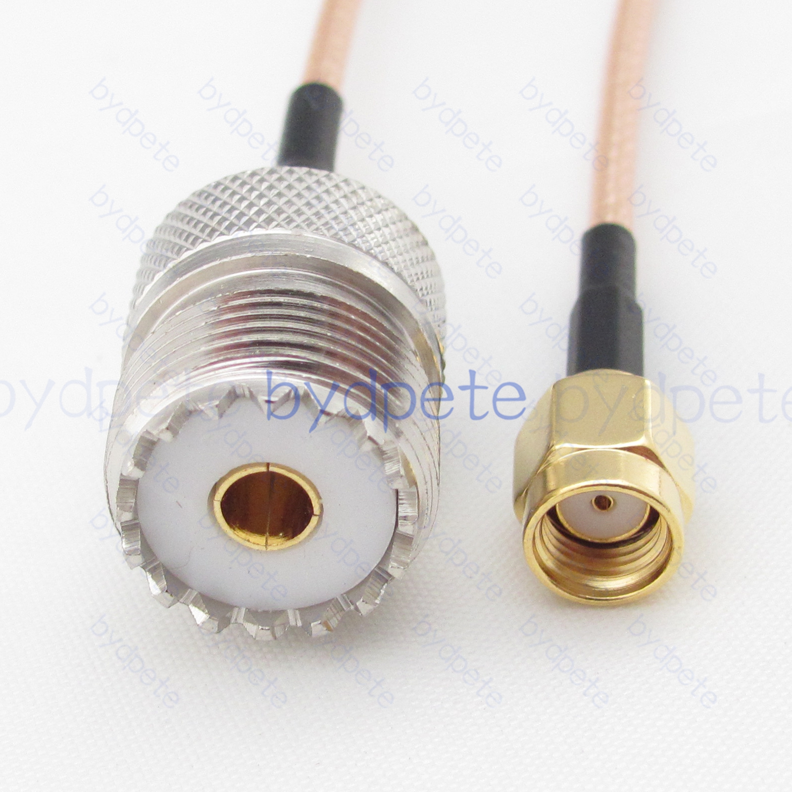 * Connector A : UHF female SO239 jack ( outside is thread and center is hole female pin ) * Connector B : RPSMA male Reverse Polarity plug ( inside is thread and center is hole female pin ) * Cable Type : RG316 Light Brown FEP Jacket ( White PTFE Insulation ) Coax Cable Low Loss ( center wires 7x0.175mm silver-plated , shield wires 80x0.1mm silver-plated ), outside diameter OD=2.5mm * Cable Length : Customized by buyer. ( If you want other length, please leave a message in the order or Contact us. ).