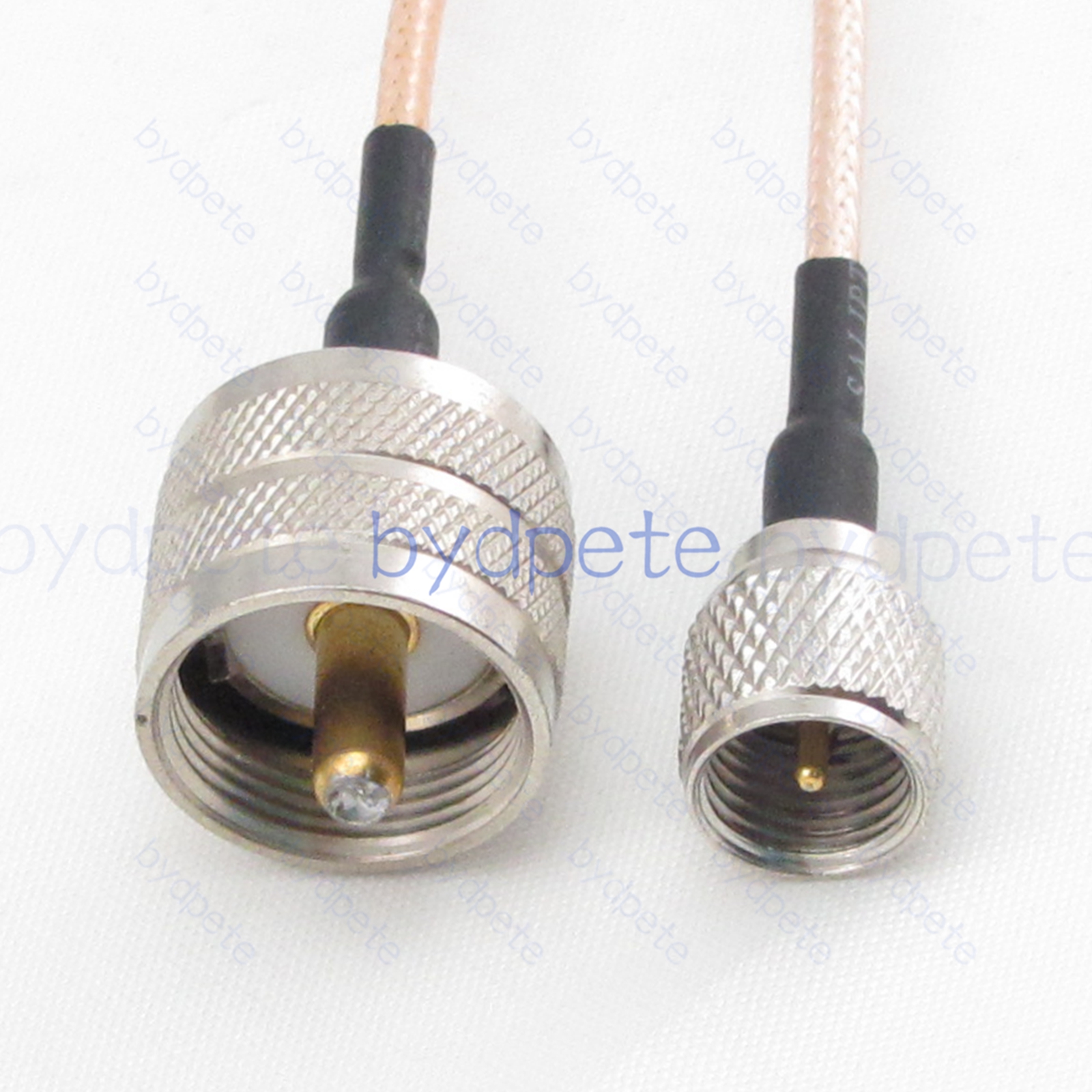 * Connector A : Mini UHF male PL259 plug ( inside is thread and center is needle male pin ) * Connector B : UHF male PL259 plug ( inside is thread and center is needle male pin ) * Cable Type : RG316 Light Brown FEP Jacket ( White PTFE Insulation ) Coax Cable Low Loss ( center wires 7x0.175mm silver-plated , shield wires 80x0.1mm silver-plated ), outside diameter OD=2.5mm * Cable Length : Customized by buyer. ( If you want other length, please leave a message in the order or Contact us. ).
