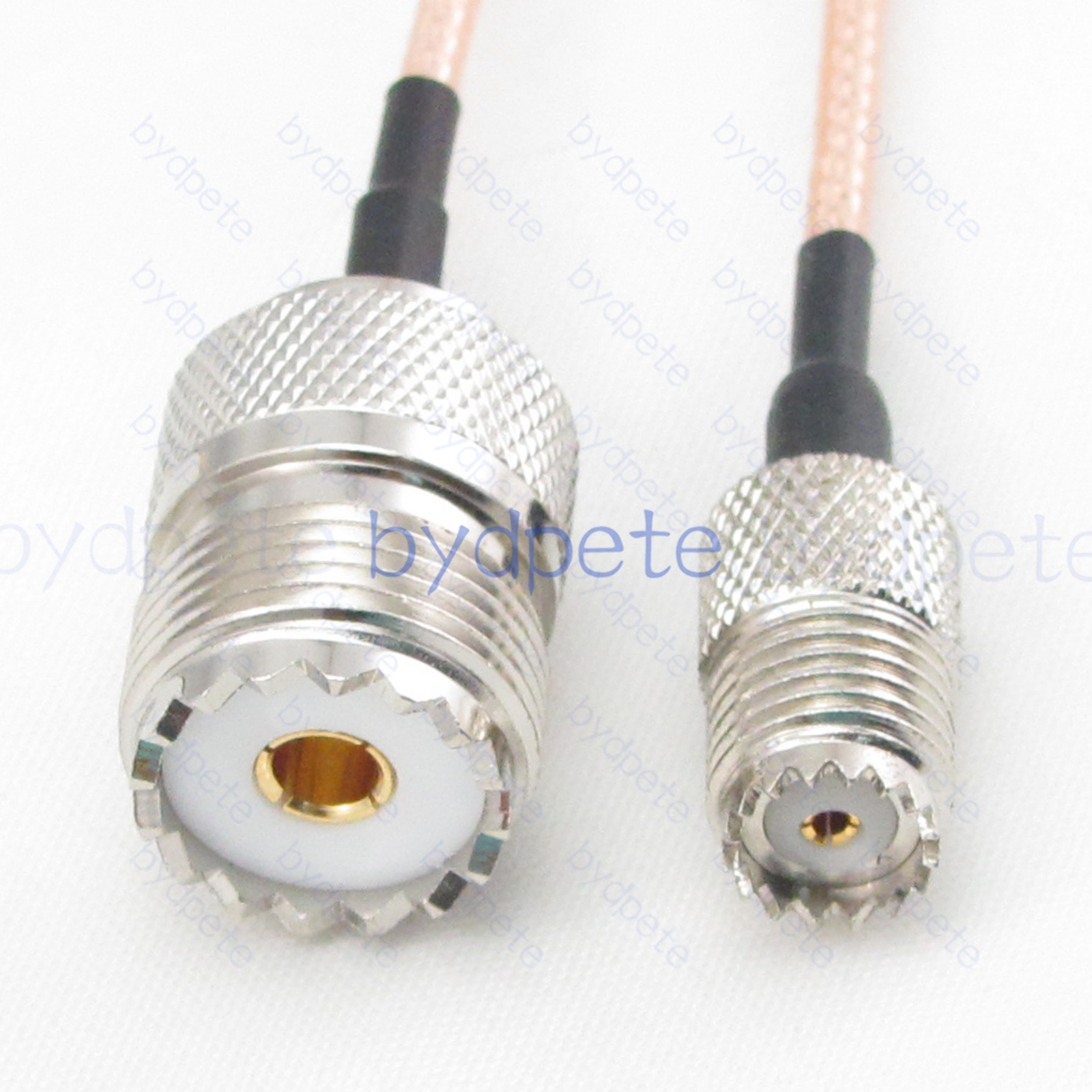 * Connector A : Mini UHF female SO239 plug ( outside is thread and center is hole female pin ) * Connector B : UHF female SO239 plug ( outside is thread and center is hole female pin ) * Cable Type : RG316 Light Brown FEP Jacket ( White PTFE Insulation ) Coax Cable Low Loss ( center wires 7x0.175mm silver-plated , shield wires 80x0.1mm silver-plated ), outside diameter OD=2.5mm * Cable Length : Customized by buyer. ( If you want other length, please leave a message in the order or Contact us. ).