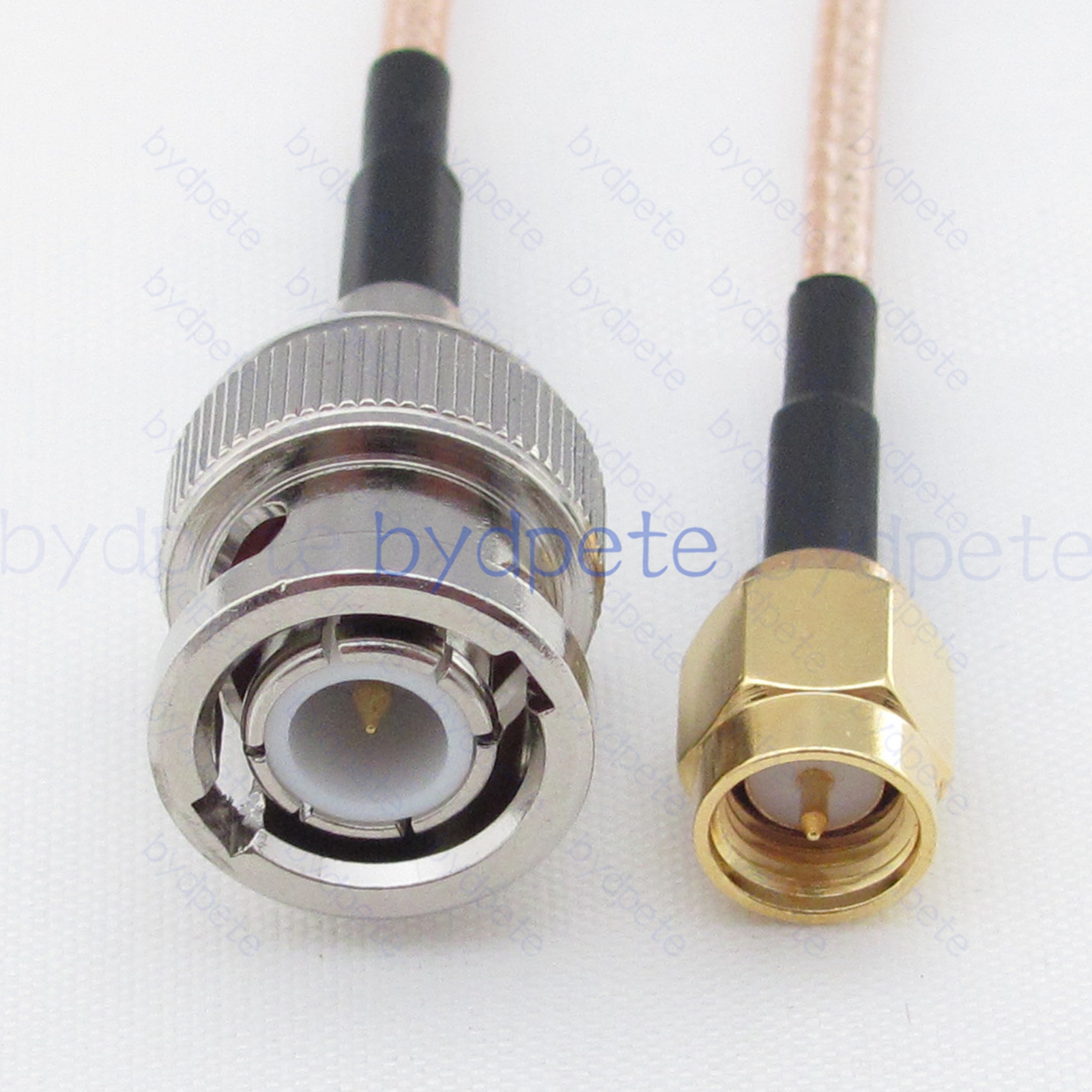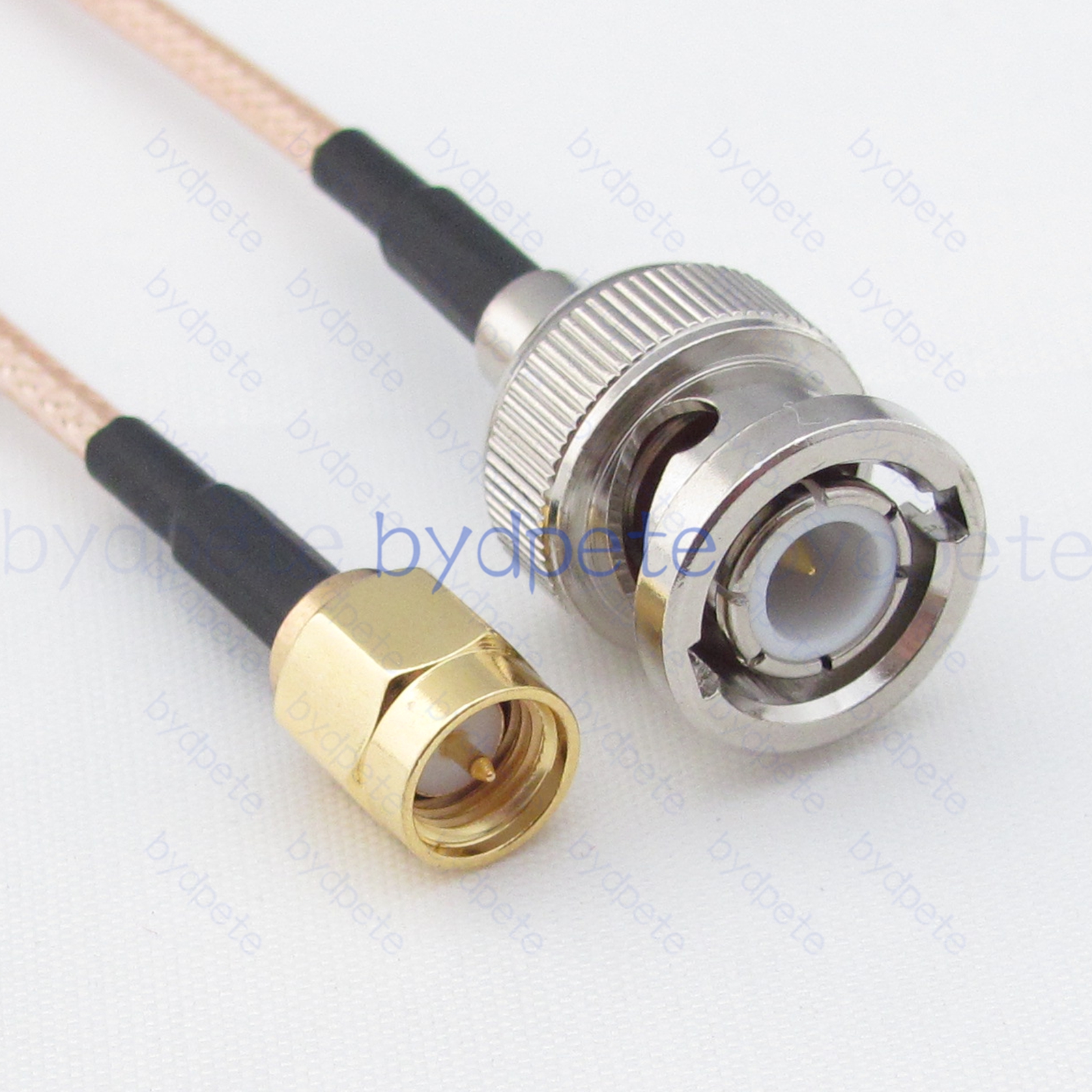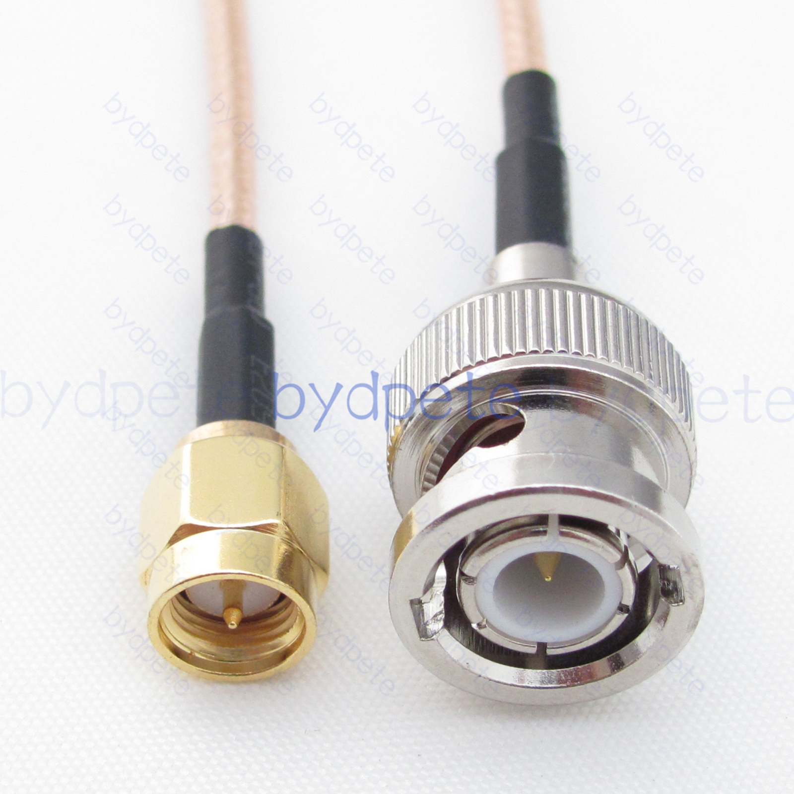 * Connector A : BNC male plug ( inside is thread and center is needle male pin ) * Connector B : SMA male plug ( inside is thread and center is needle male pin ) * Cable Type : RG316 Light Brown FEP Jacket ( White PTFE Insulation ) Coax Cable Low Loss ( center wires 7x0.175mm silver-plated , shield wires 80x0.1mm silver-plated ), outside diameter OD=2.5mm * Cable Length : Customized by buyer. ( If you want other length, please leave a message in the order or Contact us. ).