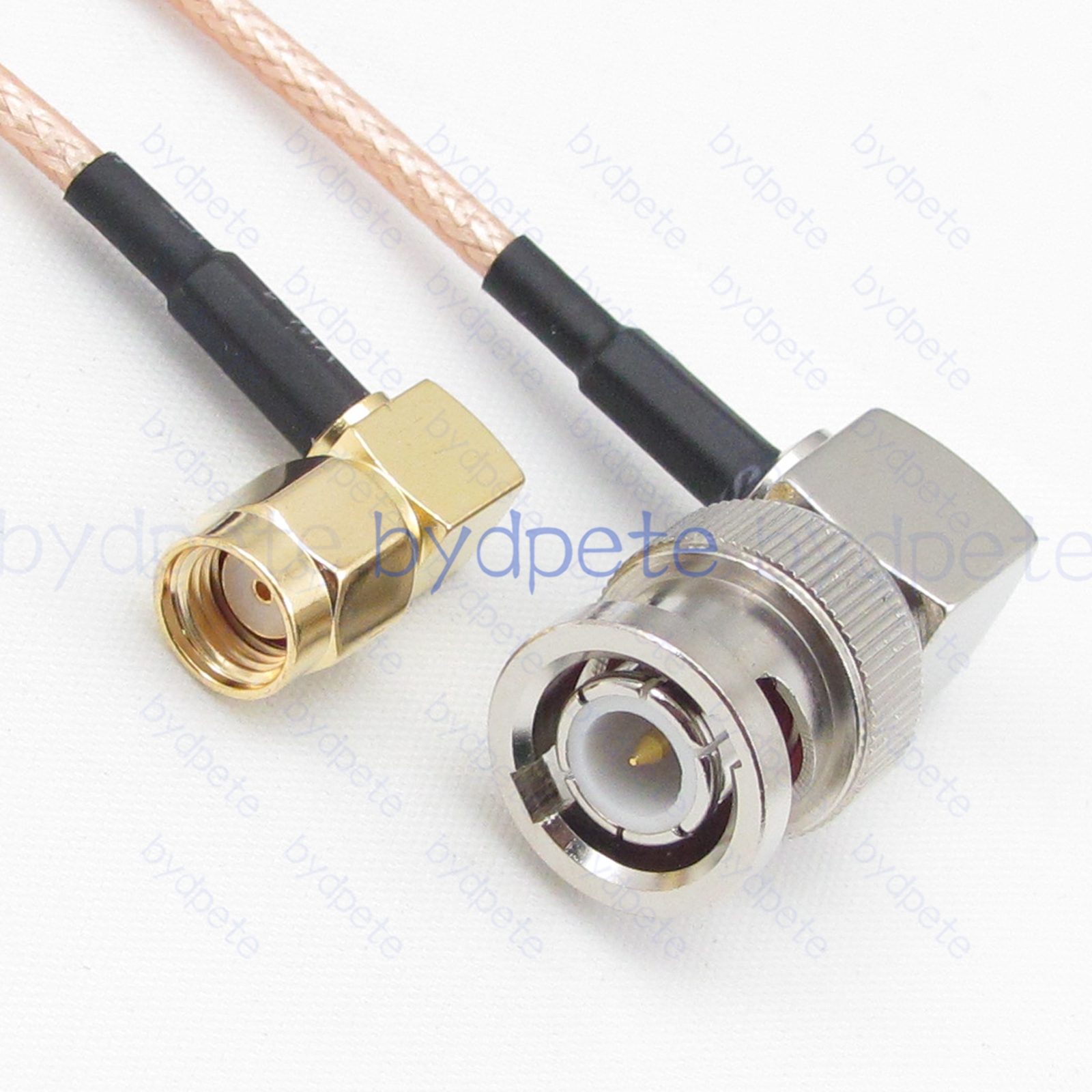 * Connector A : BNC male Right Angle 90Degree plug ( inside is thread and center is needle male pin ) * Connector B : RPSMA male Right Angle 90Degree Reverse Polarity plug ( inside is thread and center is hole female pin ) * Cable Type : RG316 Light Brown FEP Jacket ( White PTFE Insulation ) Coax Cable Low Loss ( center wires 7x0.175mm silver-plated , shield wires 80x0.1mm silver-plated ), outside diameter OD=2.5mm * Cable Length : Customized by buyer. ( If you want other length, please leave a message in the order or Contact us. ).
