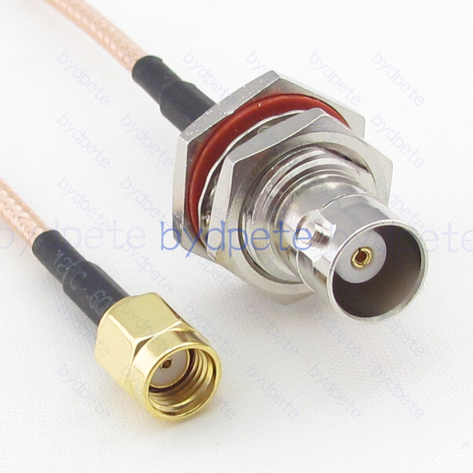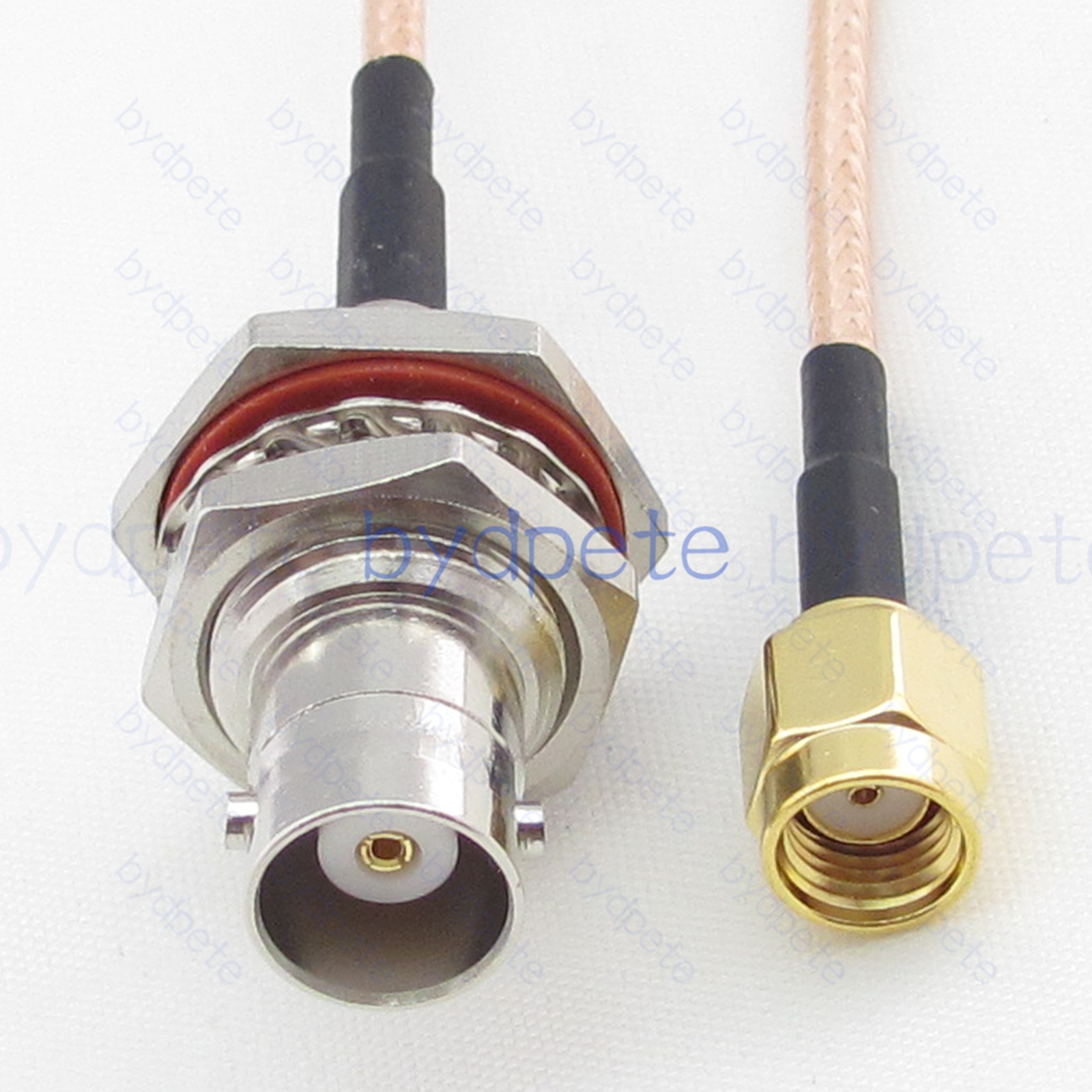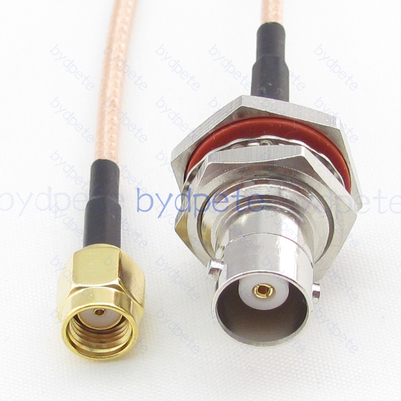 * Connector A : BNC female Bulkhead Waterproof jack ( outside is thread and center is hole female pin ) * Connector B : RPSMA male Plug ( inside is thread and center is hole female pin ) * Cable Type : RG316 Light Brown FEP Jacket ( White PTFE Insulation ) Coax Cable Low Loss ( center wires 7x0.175mm silver-plated , shield wires 80x0.1mm silver-plated ), outside diameter OD=2.5mm * Cable Length : Customized by buyer. ( If you want other length, please leave a message in the order or Contact us. ).