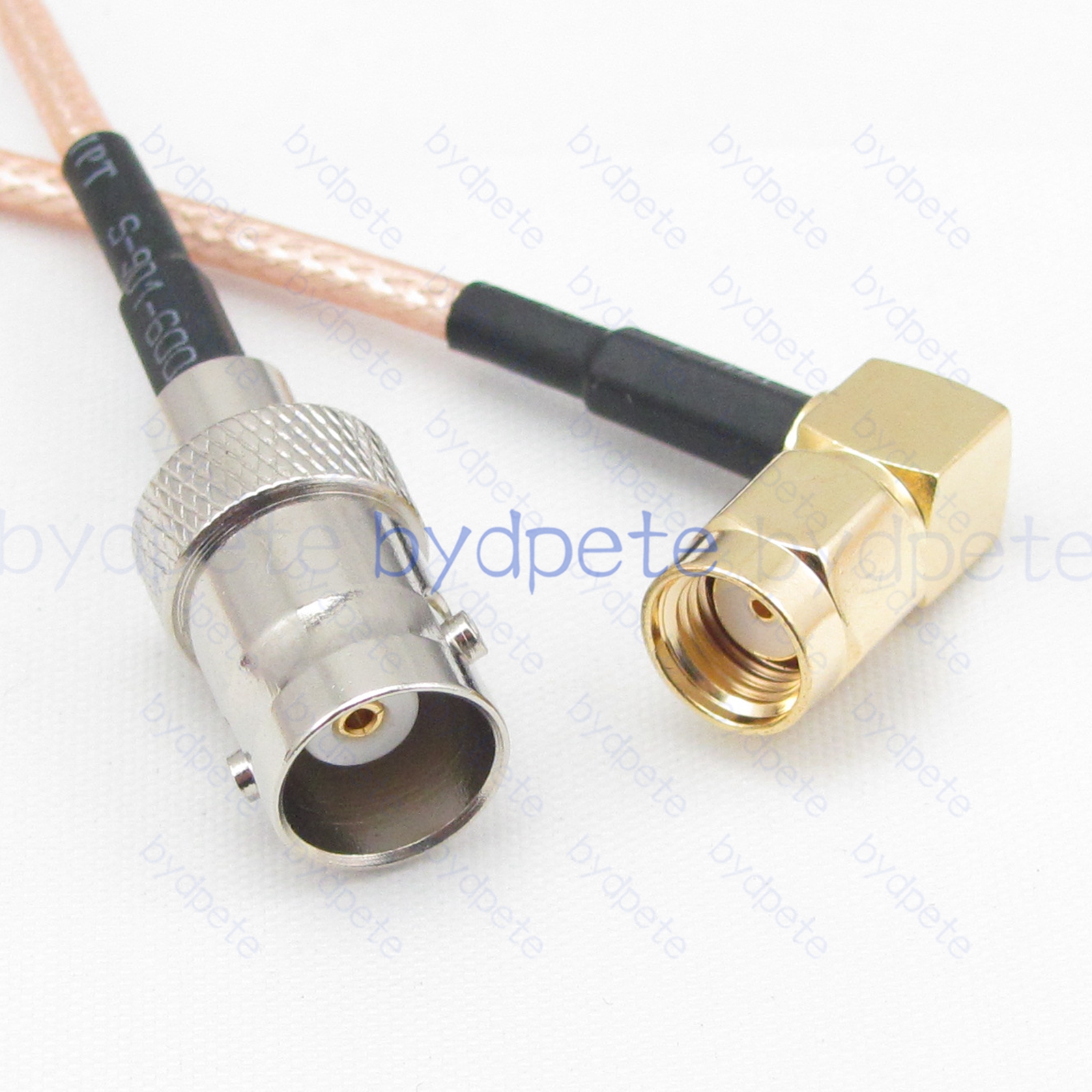 * Connector A : BNC female jack ( outside is thread and center is hole female pin ) * Connector B : RPSMA male Right Angle 90Degree Plug ( inside is thread and center is hole female pin ) * Cable Type : RG316 Light Brown FEP Jacket ( White PTFE Insulation ) Coax Cable Low Loss ( center wires 7x0.175mm silver-plated , shield wires 80x0.1mm silver-plated ), outside diameter OD=2.5mm * Cable Length : Customized by buyer. ( If you want other length, please leave a message in the order or Contact us. ).