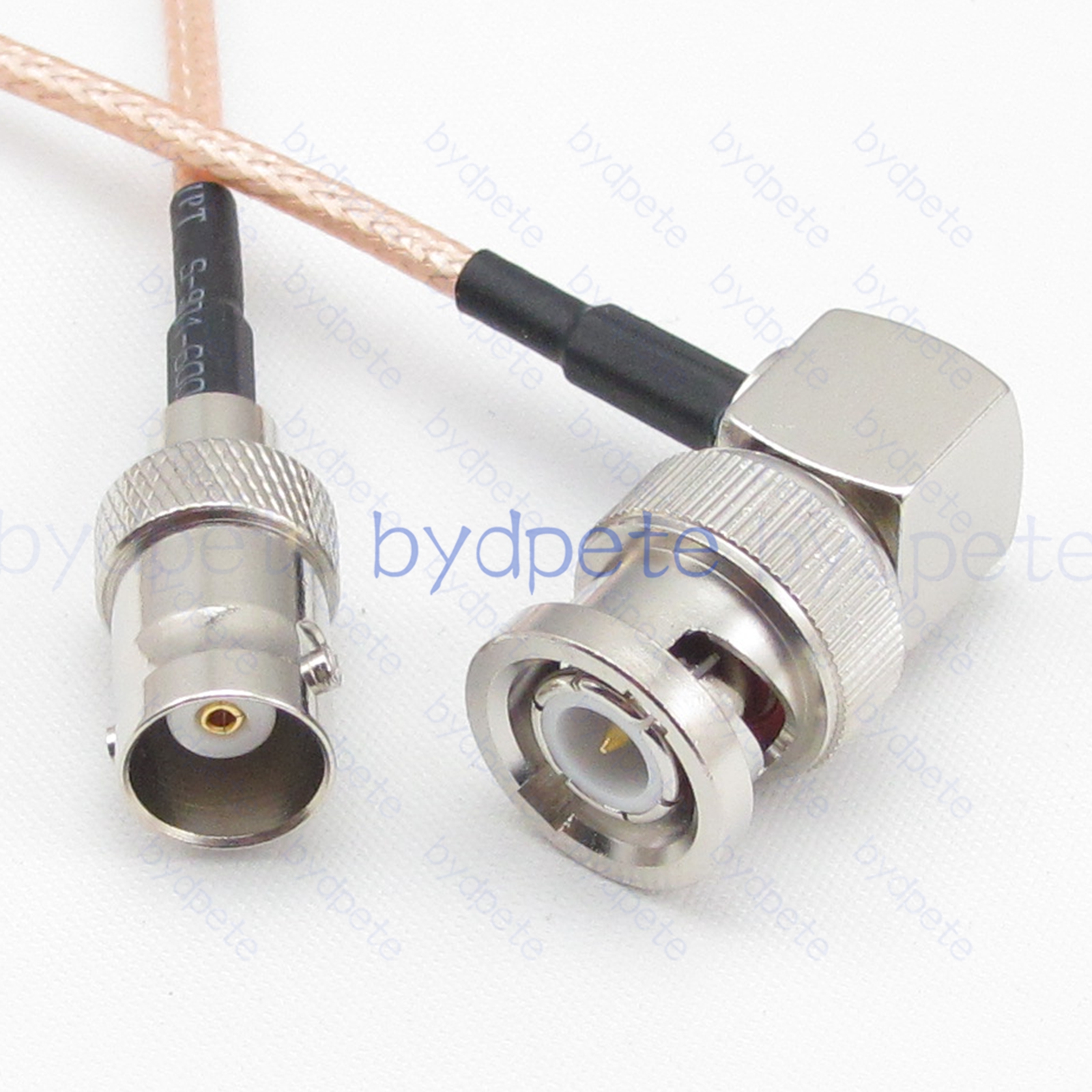 * Connector A : BNC male Right Angle 90Degree plug ( inside is thread and center is needle male pin ) * Connector B : BNC female jack ( outside is thread and center is hole female pin ) * Cable Type : RG316 Light Brown FEP Jacket ( White PTFE Insulation ) Coax Cable Low Loss ( center wires 7x0.175mm silver-plated , shield wires 80x0.1mm silver-plated ), outside diameter OD=2.5mm * Cable Length : Customized by buyer. ( If you want other length, please leave a message in the order or Contact us. ).