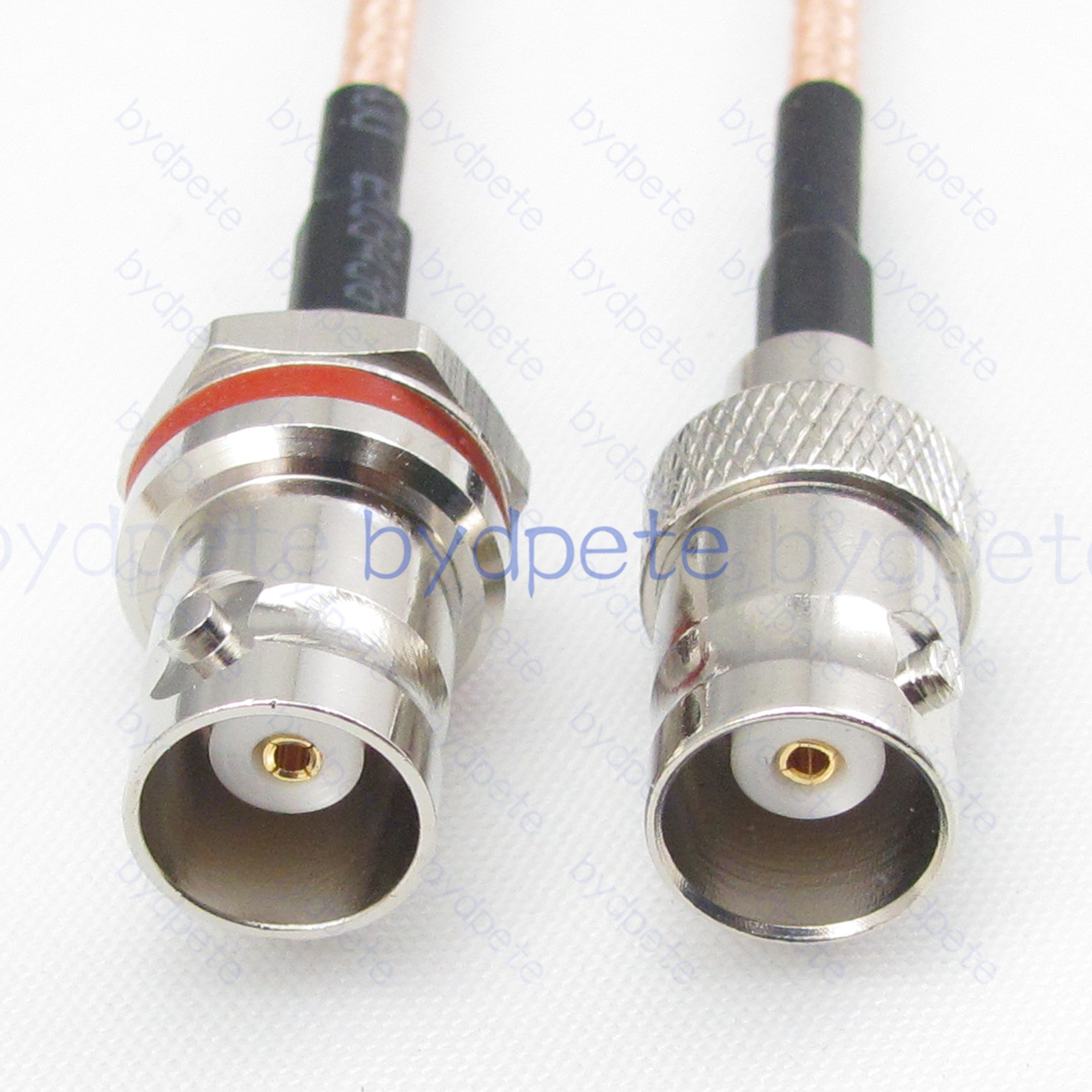 * 1x BNC female Behind Nut jack ( outside thread and center is hole female pin ) to BNC female jack ( outside thread and center is hole female pin ) with RG316 Light Brown Jacket Cable PTFE Coaxial Pigtail Coax Kable 50ohm BPC071BNC316MS