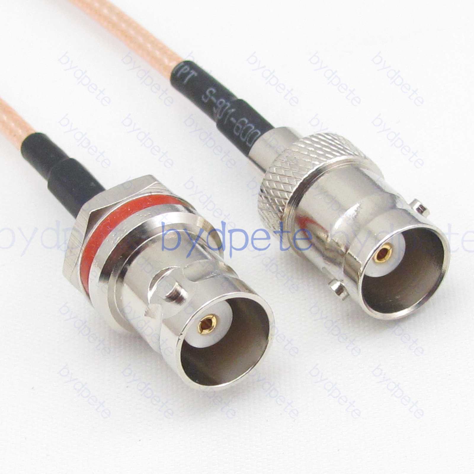 * Connector A : BNC female Behind Nut jack ( outside is thread and center is hole female pin ) * Connector B : BNC female jack ( outside is thread and center is hole female pin ) * Cable Type : RG316 Light Brown FEP Jacket ( White PTFE Insulation ) Coax Cable Low Loss ( center wires 7x0.175mm silver-plated , shield wires 80x0.1mm silver-plated ), outside diameter OD=2.5mm * Cable Length : Customized by buyer. ( If you want other length, please leave a message in the order or Contact us. ).
