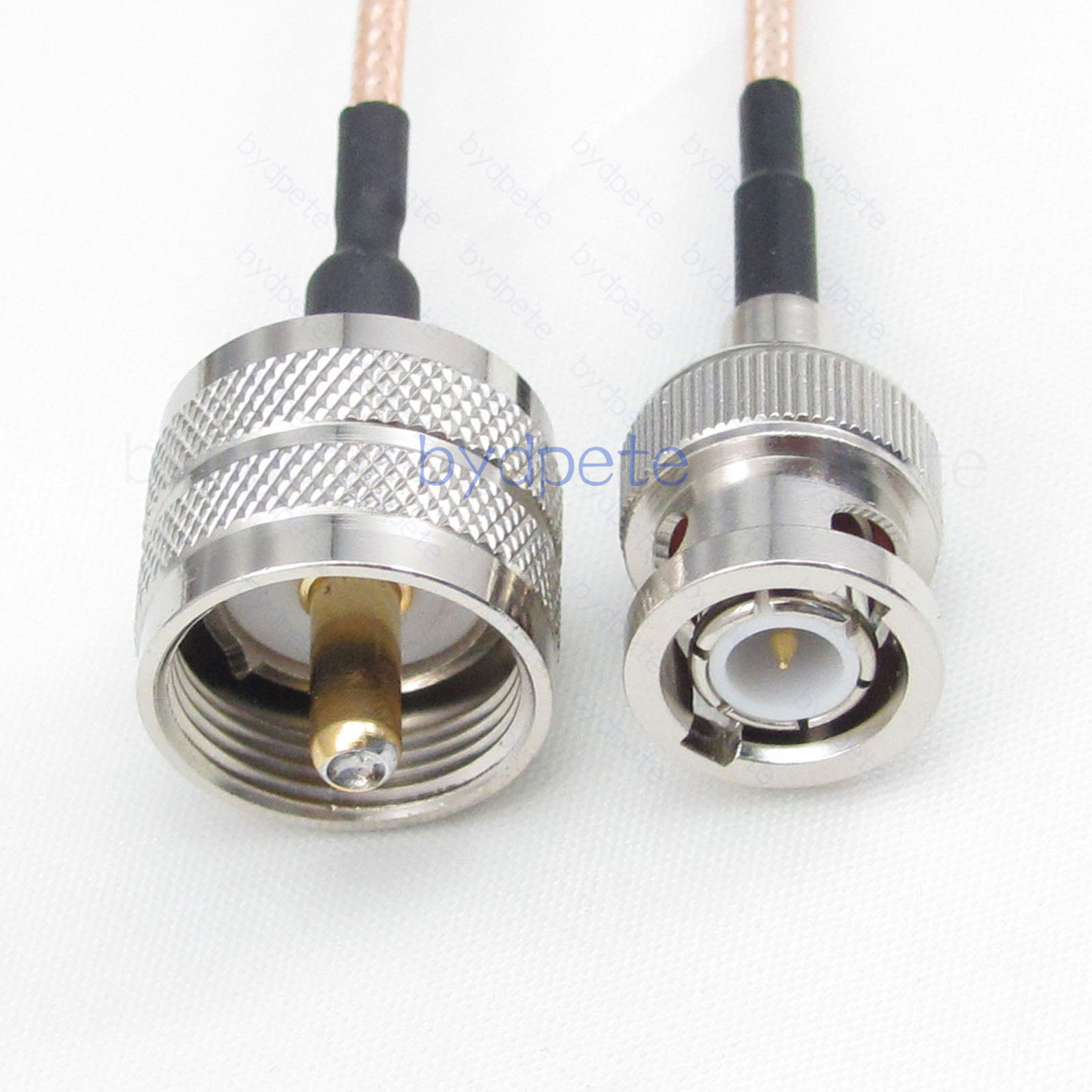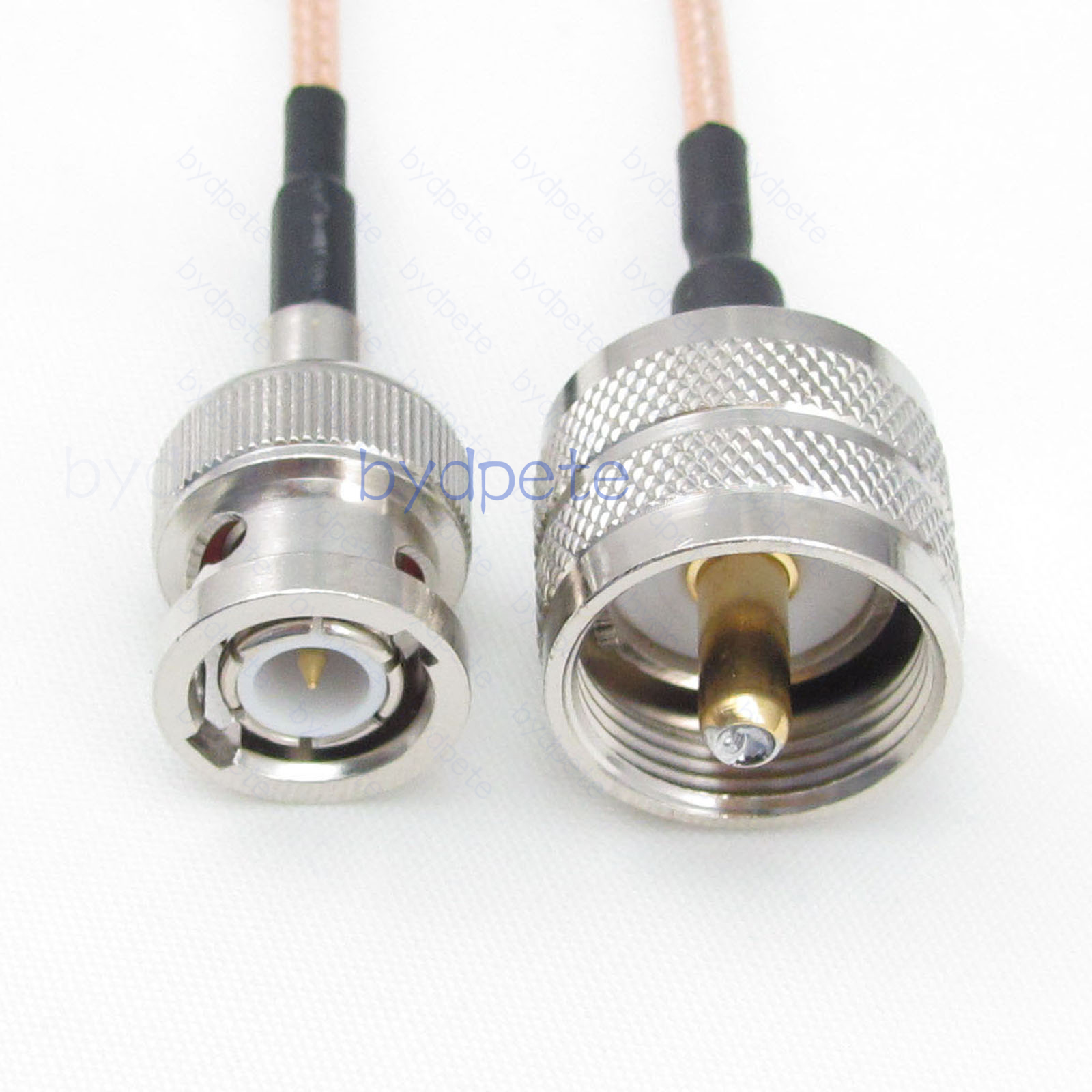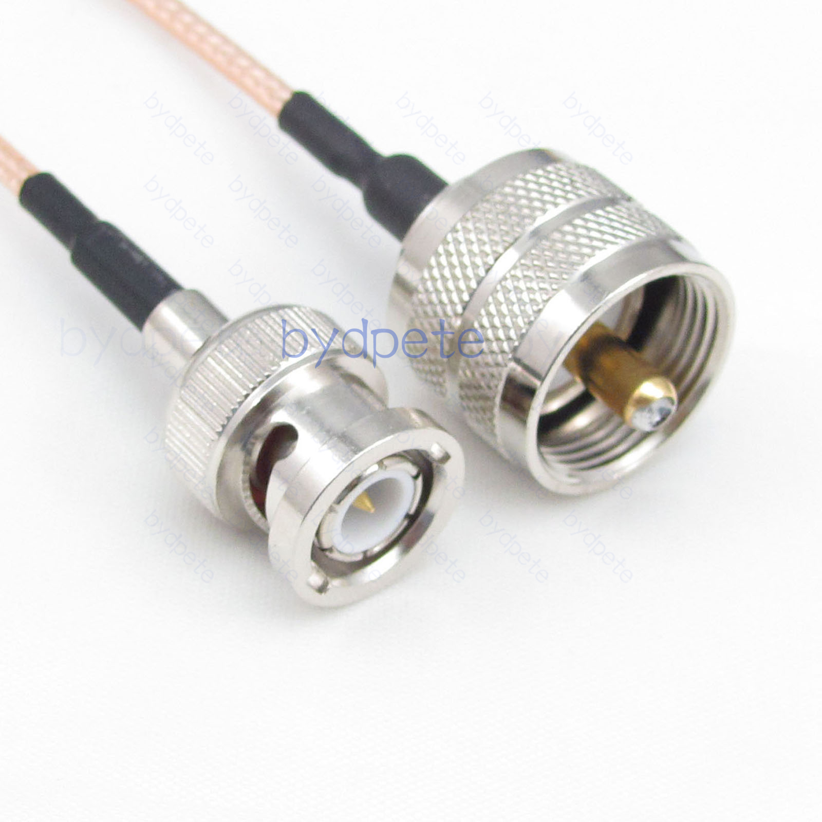 * Connector A : BNC male plug ( inside is thread and center is needle male pin ) * Connector B : UHF male plug ( inside is thread and center is needle male pin ) * Cable Type : RG316 Light Brown FEP Jacket ( White PTFE Insulation ) Coax Cable Low Loss ( center wires 7x0.175mm silver-plated , shield wires 80x0.1mm silver-plated ), outside diameter OD=2.5mm * Cable Length : Customized by buyer. ( If you want other length, please leave a message in the order or Contact us. ).