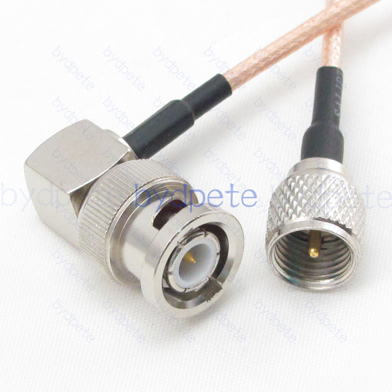 * Connector A : BNC male Right Angle 90Degree plug ( inside is thread and center is needle male pin ) * Connector B : Mini UHF male plug ( inside is thread and center is needle male pin ) * Cable Type : RG316 Light Brown FEP Jacket ( White PTFE Insulation ) Coax Cable Low Loss ( center wires 7x0.175mm silver-plated , shield wires 80x0.1mm silver-plated ), outside diameter OD=2.5mm * Cable Length : Customized by buyer. ( If you want other length, please leave a message in the order or Contact us. ).
