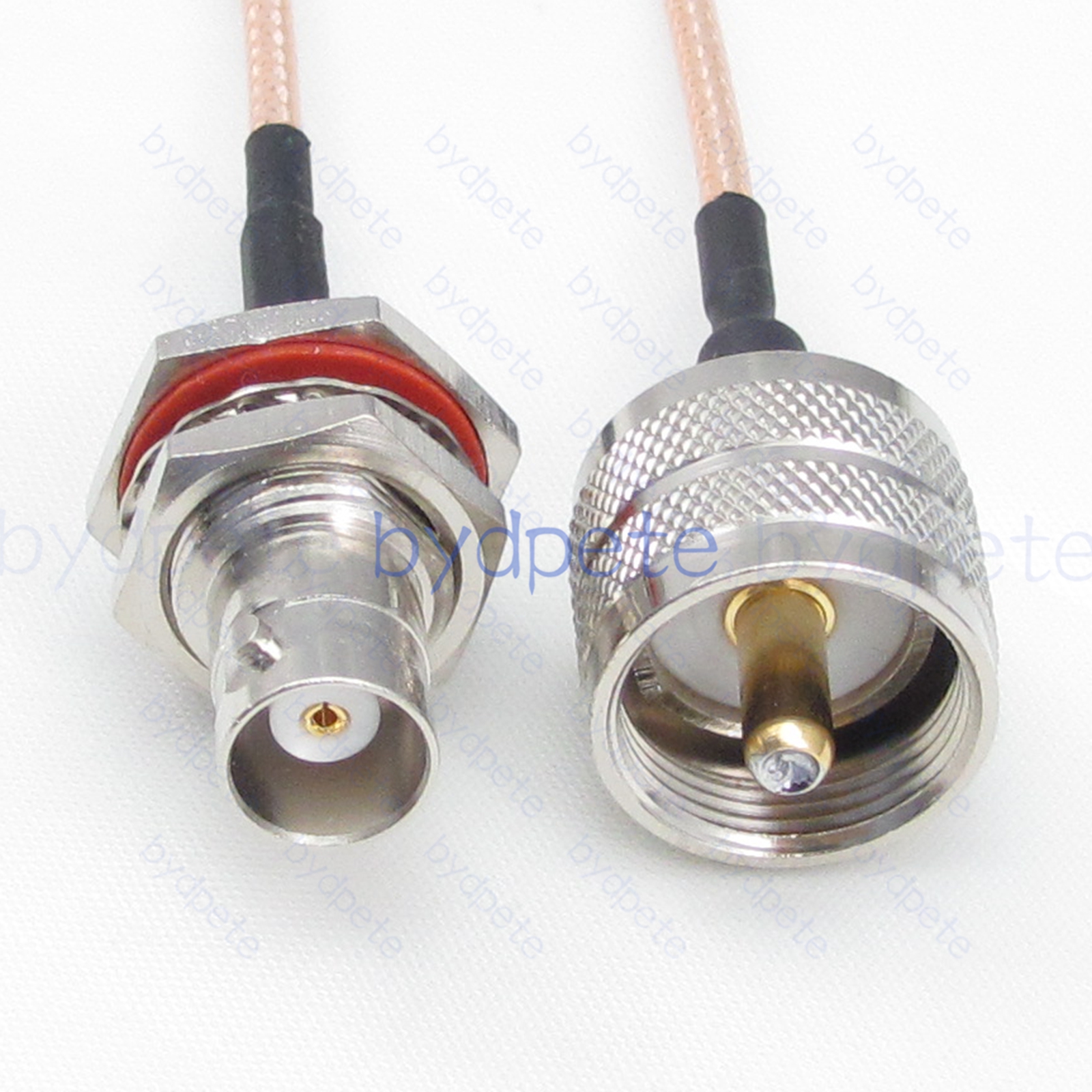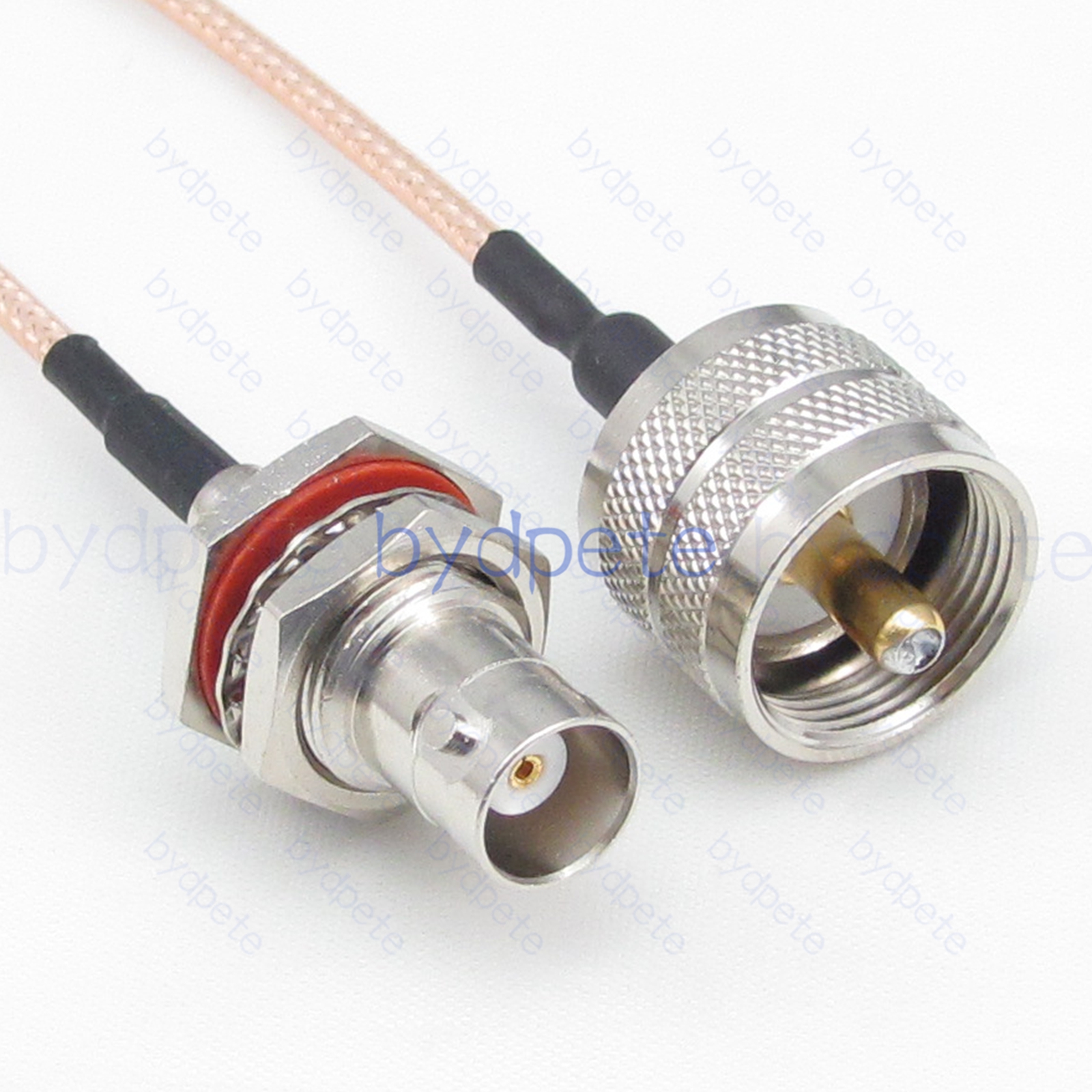 * Connector A : BNC female Bulkhead Waterproof jack ( outside is thread and center is hole female pin ) * Connector B : UHF male plug ( inside is thread and center is needle male pin ) * Cable Type : RG316 Light Brown FEP Jacket ( White PTFE Insulation ) Coax Cable Low Loss ( center wires 7x0.175mm silver-plated , shield wires 80x0.1mm silver-plated ), outside diameter OD=2.5mm * Cable Length : Customized by buyer. ( If you want other length, please leave a message in the order or Contact us. ).