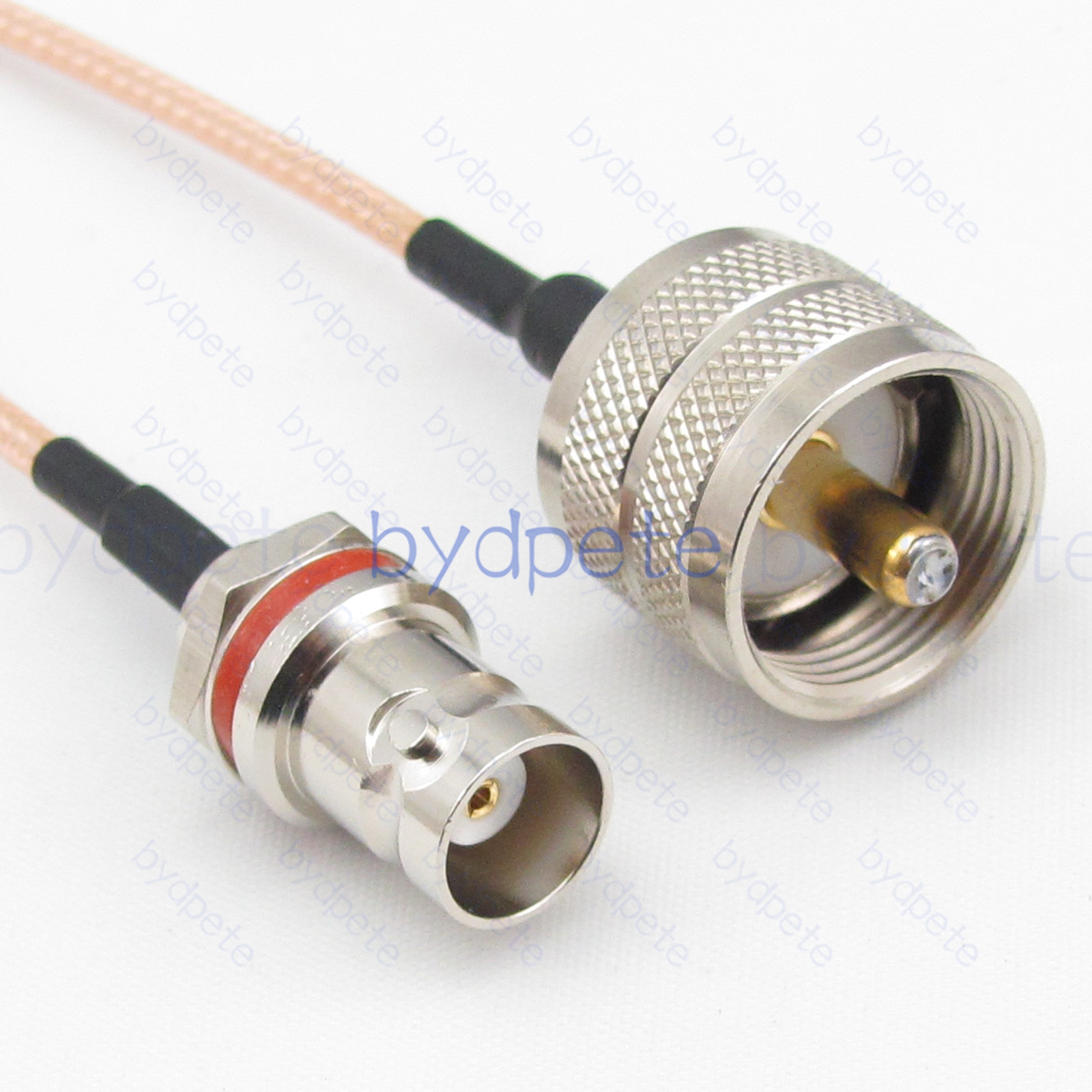 * 1x BNC female Bulkhead Behind Nut jack ( outside thread and center is hole female pin ) to UHF male PL259 plug ( inside thread and center is needle male pin ) with RG316 Light Brown Jacket Cable PTFE Coaxial Pigtail Coax Kable 50ohm BPC074BNC316M1