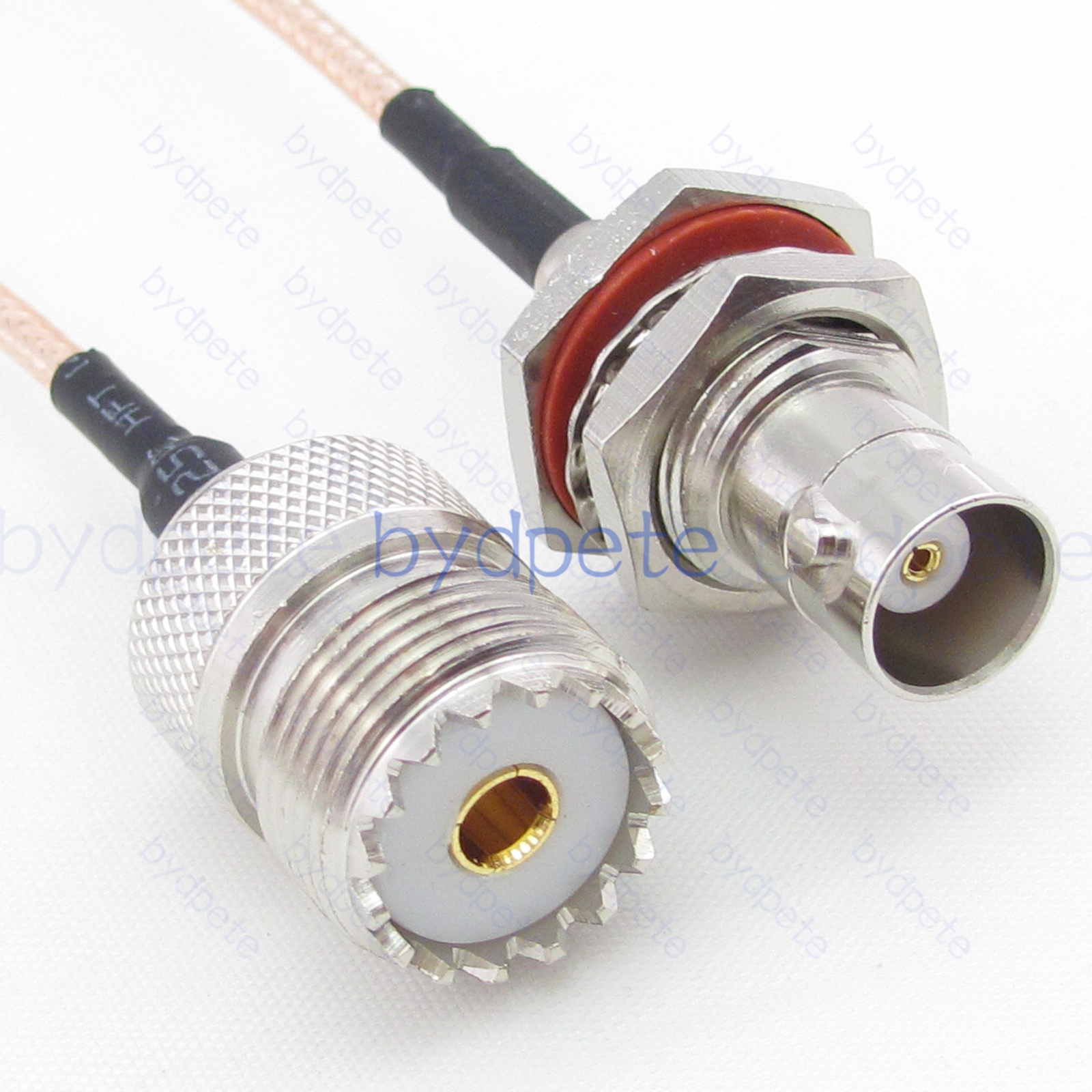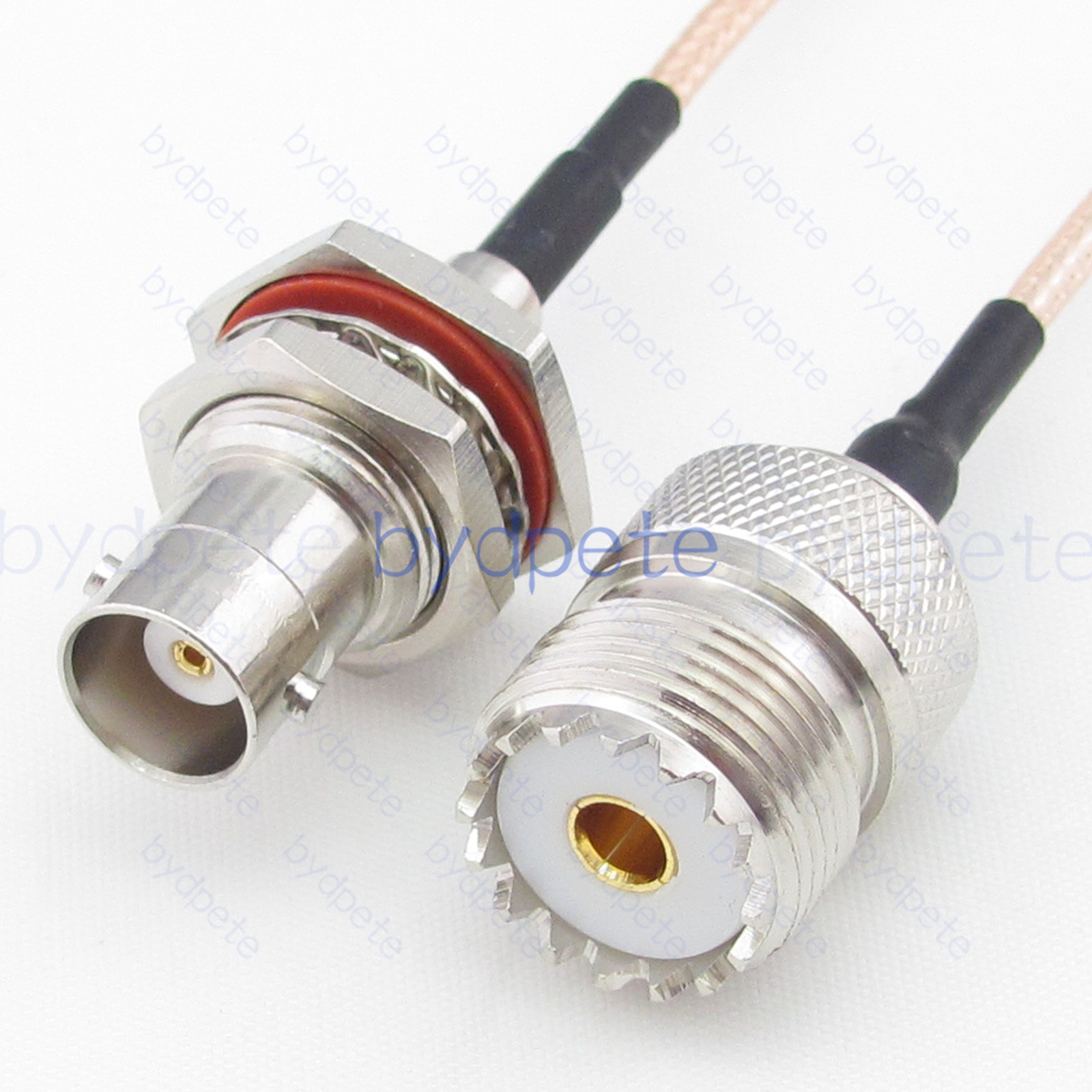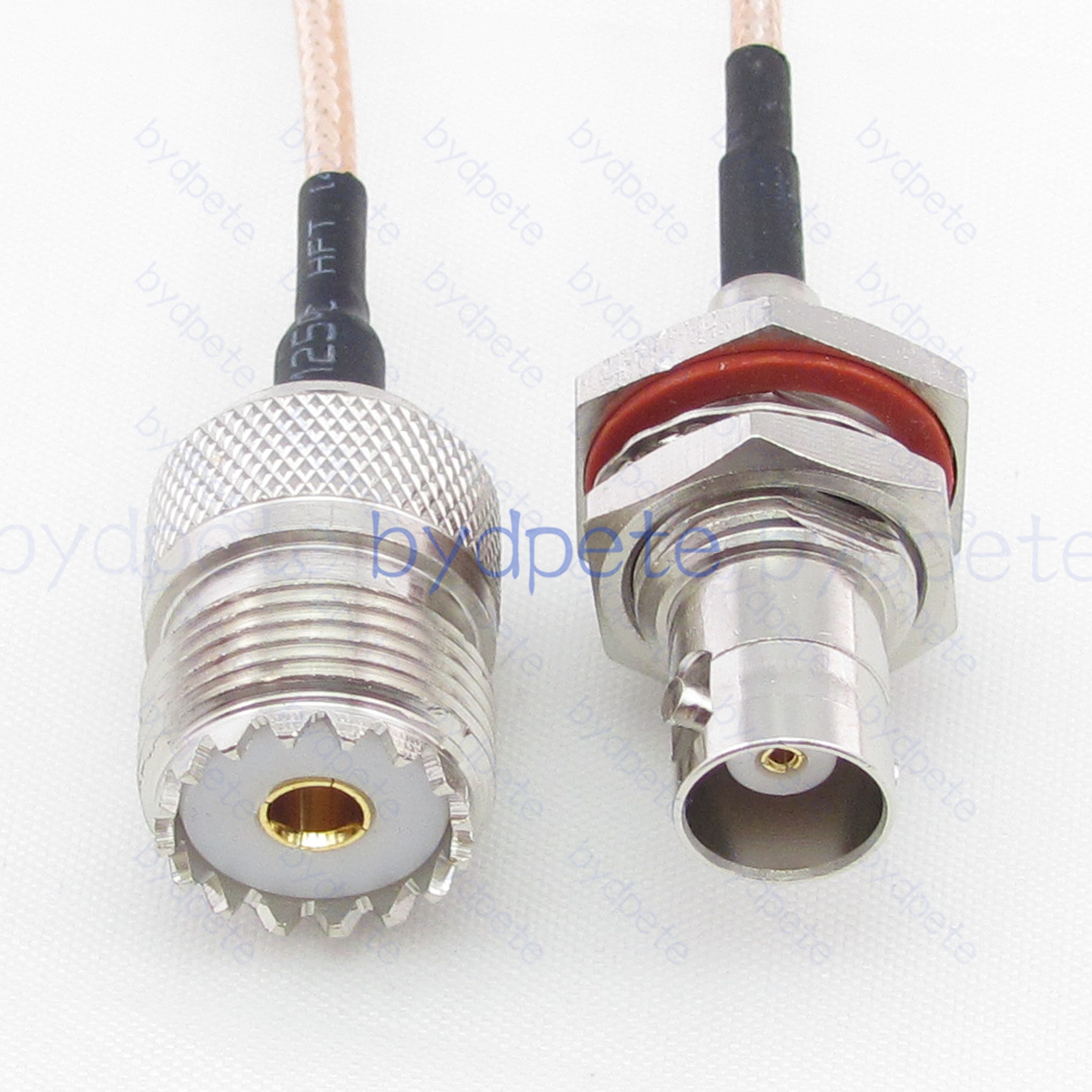 * Connector A : BNC female Bulkhead Waterproof jack ( outside is thread and center is hole female pin ) * Connector B : UHF female jack ( outside is thread and center is hole female pin ) * Cable Type : RG316 Light Brown FEP Jacket ( White PTFE Insulation ) Coax Cable Low Loss ( center wires 7x0.175mm silver-plated , shield wires 80x0.1mm silver-plated ), outside diameter OD=2.5mm * Cable Length : Customized by buyer. ( If you want other length, please leave a message in the order or Contact us. ).